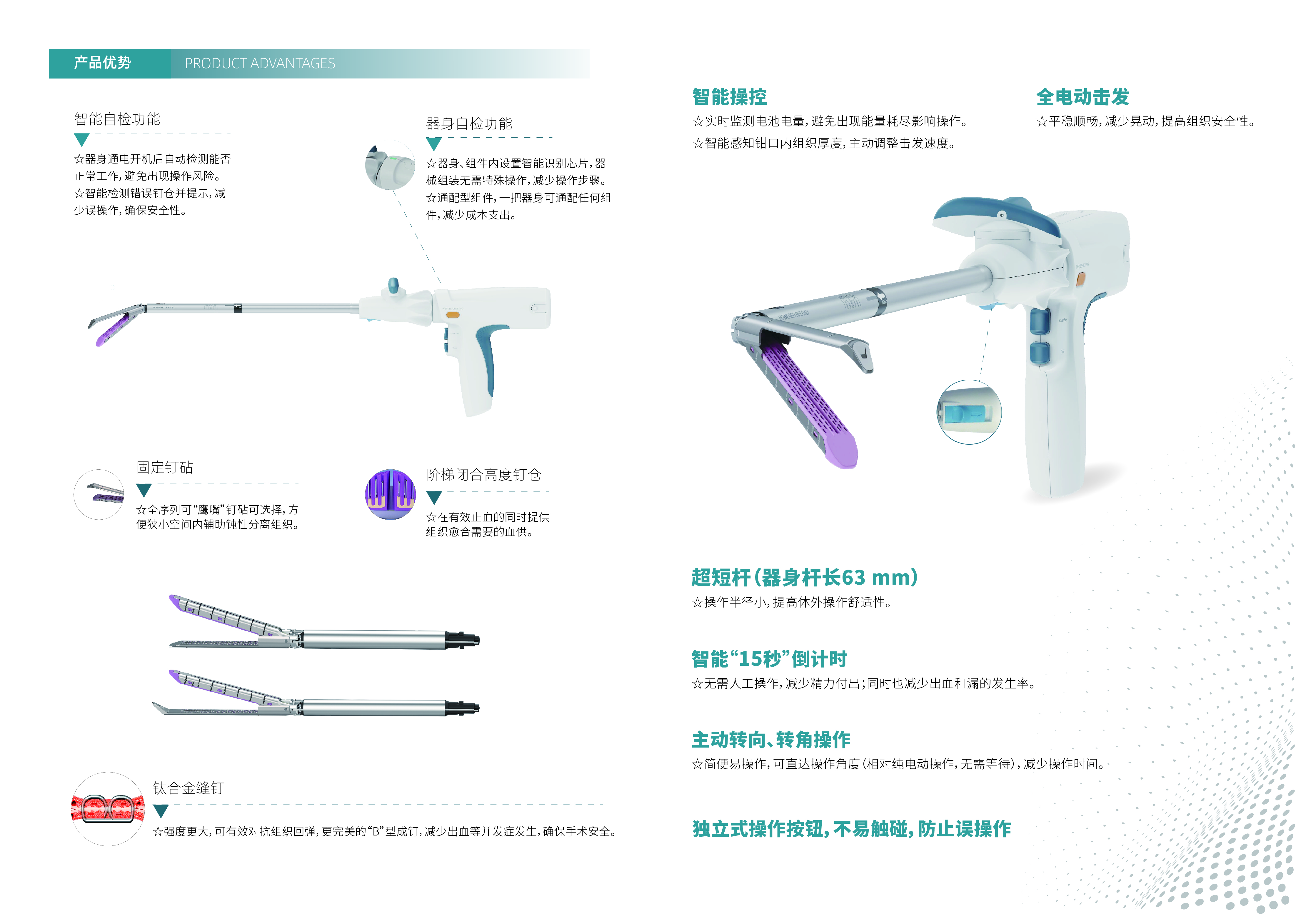 •三级阶梯型成钉设计,兼顾切缘血供和止血效果,适用组织厚度范围更广。